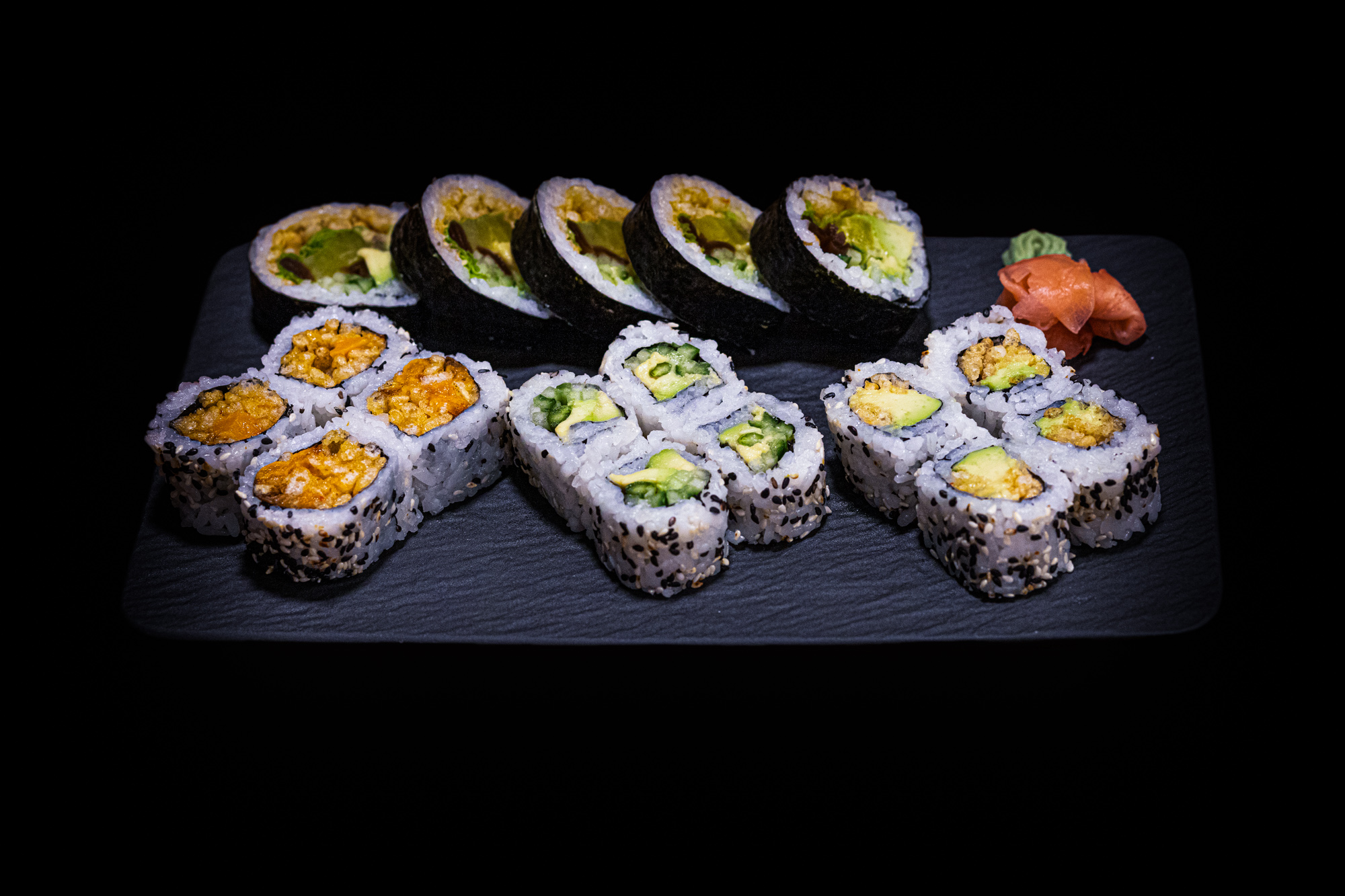 1 futomaki california 1 kamikaze salmon 4 hosomaki salmon 4 hosomaki cucumber